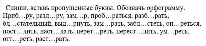 ПрибЕру, раздАрю, замЕр, пробИраться, разбИрать, блИстательный, выдЕрнуть, замИрать, заблИстеть, опЕреться, постЕлить, настИлать, перетЕреть, умЕреть, оттЕреть, растИрать