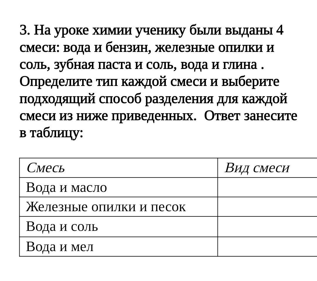 Вода и масло - неоднородное. Способ: отстаивание