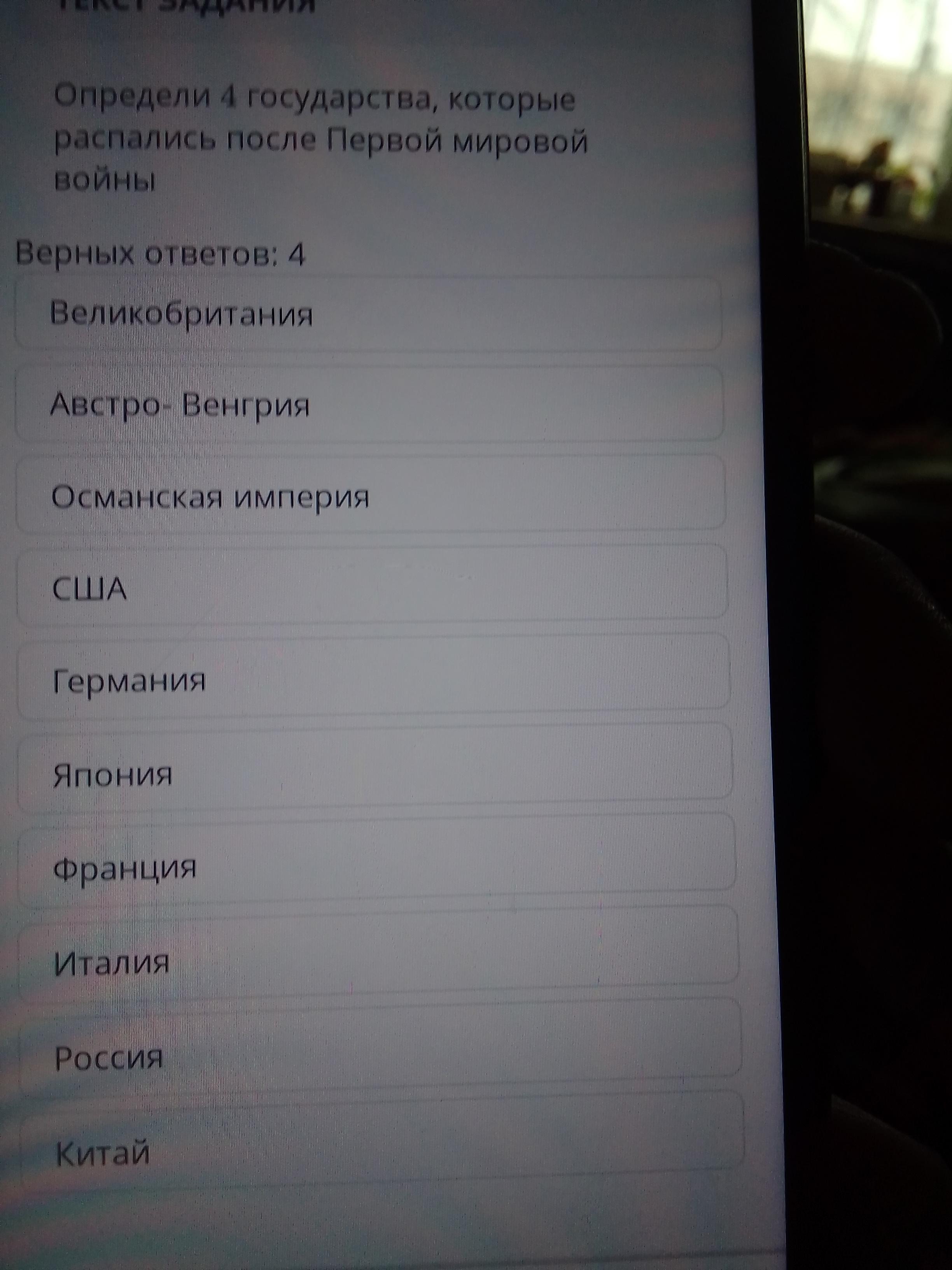 Определи 4 государства, которые распались после Первой мировой войны. Срочно прям очень нужно помогите