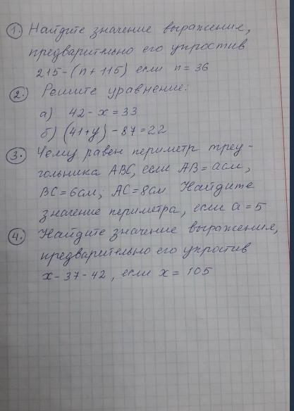 2. а) 42-x=33 б) (41+y)-87=22