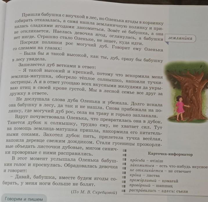 Основная мысль: дереву помогает расти матушка-природа, а человеку- трудолюбие.