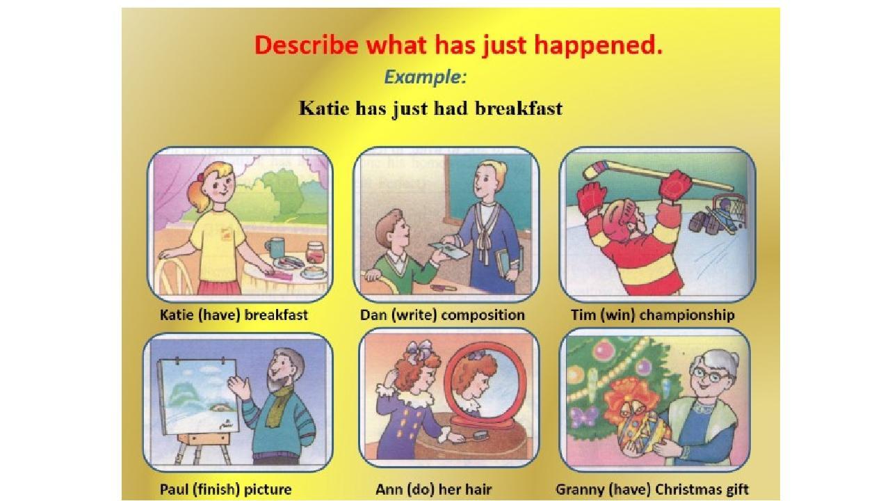 Спасибо что ответил! можешь написать описание этой же картинки только в Present Perfect