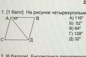 Б)52° треугольник АВД-равнобедренный так как у Ромба все стороны равны тогда угол С равен 180°-(64*2)=52