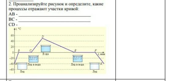 АВ)Таяние льда.ВС)Переход воды из твёрдого состояния в ждкое. СD) лед превратился в воду .Кажется так .Если не правильно Sorry