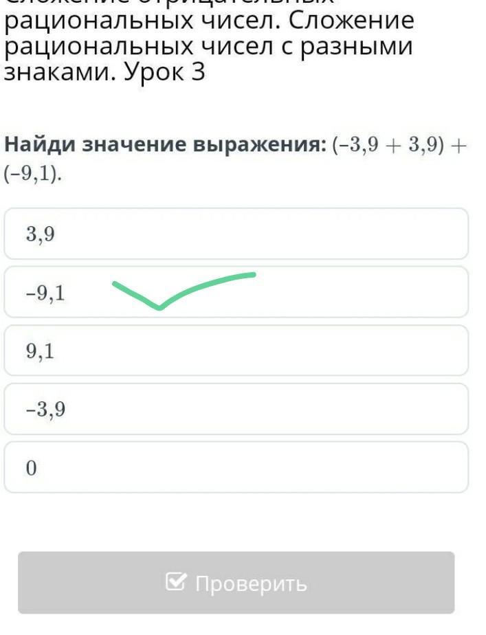 (-3,9 + 3,9) + (-9,1) = 0 - 9,1 = -9,1