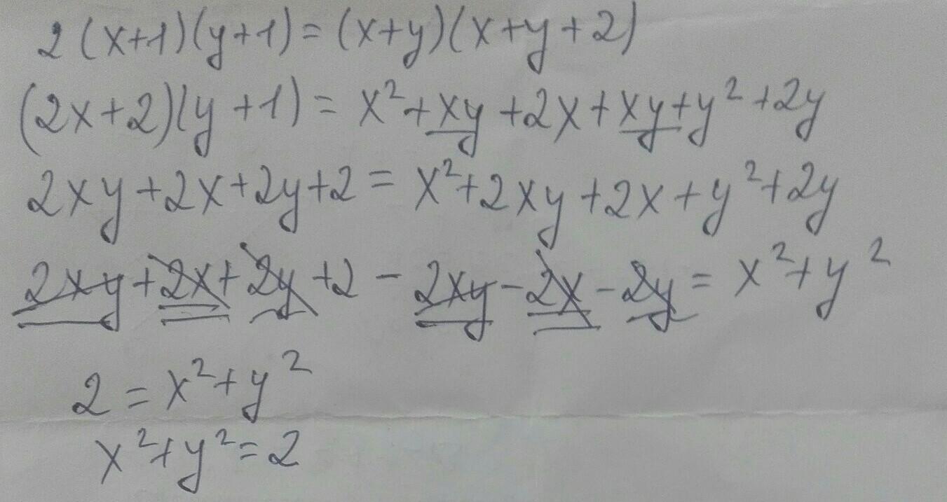 Известно, что 2(x + 1)(y + 1) = (x + y)(x + y + 2). Найди x2 + y2.
