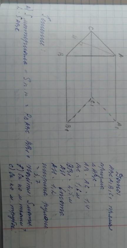 Известно, что AB AC =1, 4 м, BC =1, 6 м, 1 BB = 2,5 м, высота палатки 1,2 м.