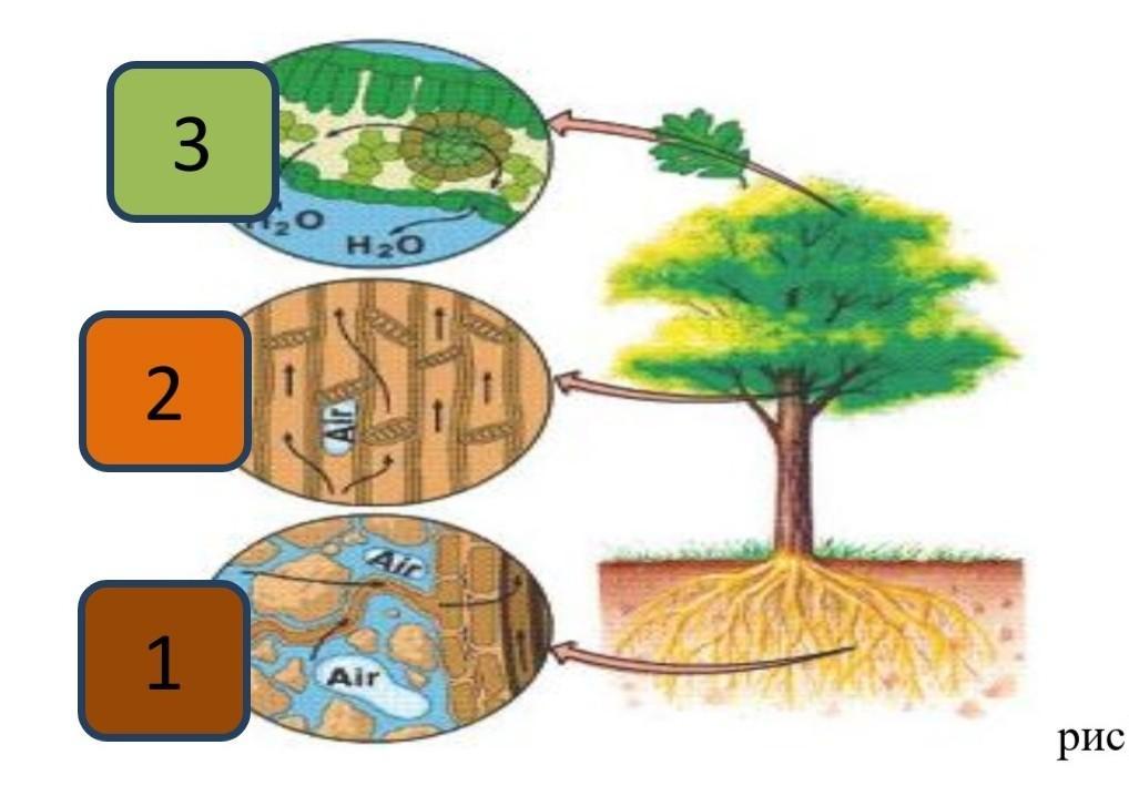 В.Назовите органы растения и процессы изображенные под цифрами 1,2,3