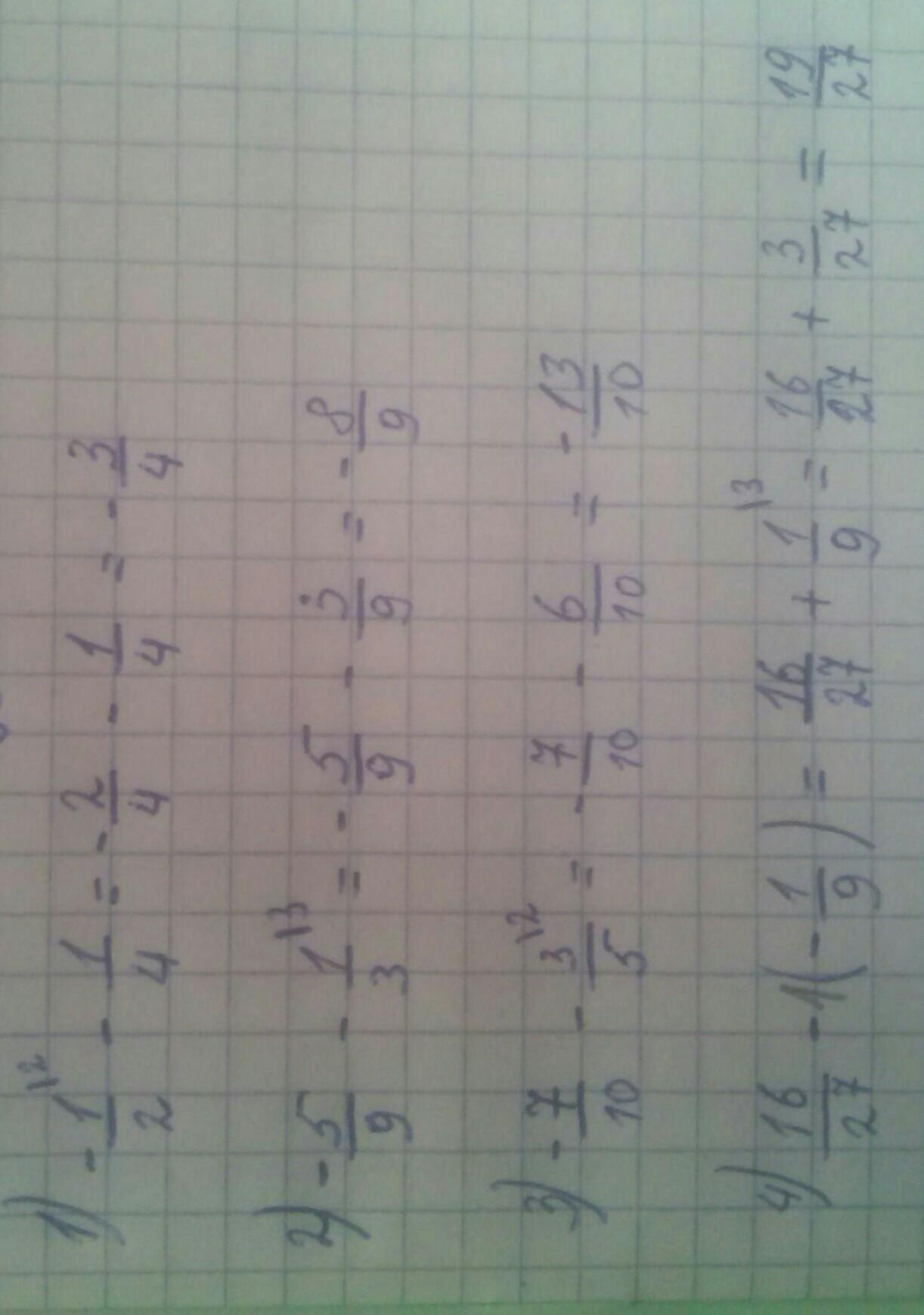4)16/27 - (-1/9)= 16/27+1/9 = 16/27 + 3/27 = 19/27.