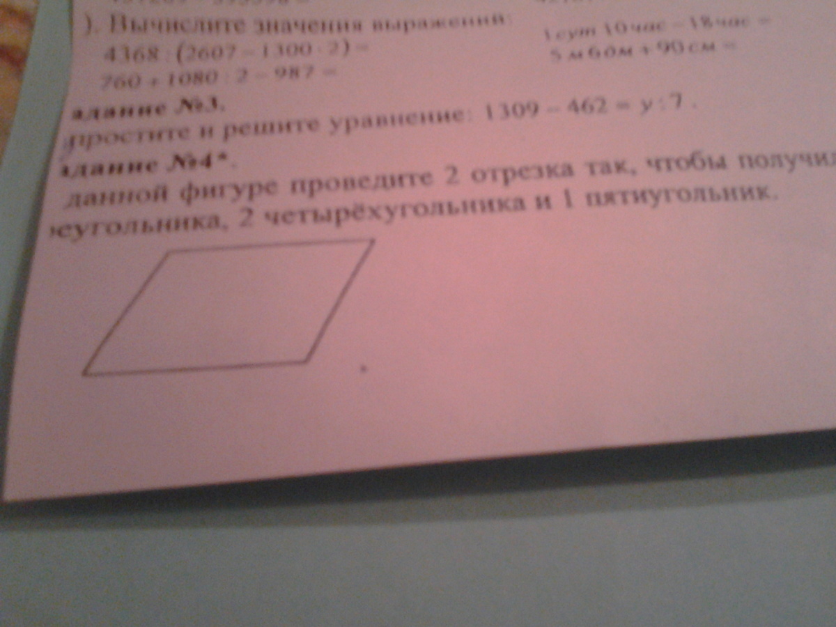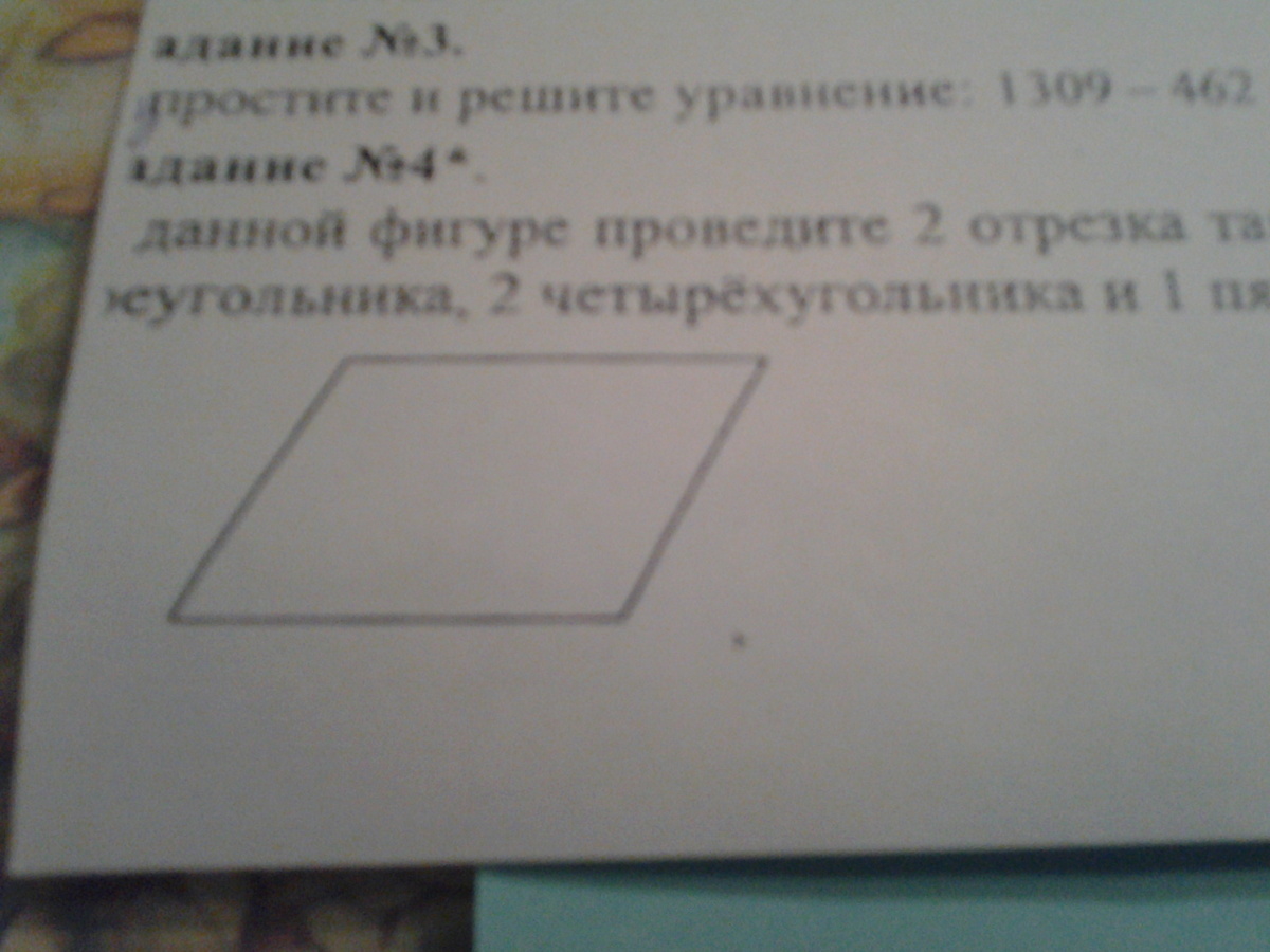 даннлй фигуре проведите 2 отрезка так чтобы получилось 3 треугольника 2 четырехугольника и 1 пятиугольник