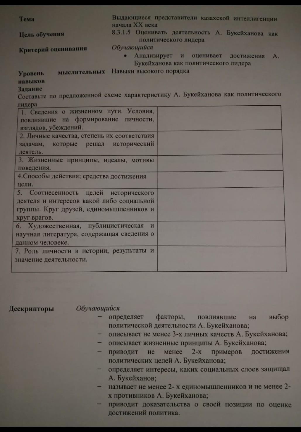 составьте по предложенной схеме характеристику А.Букейханова как политического лидера