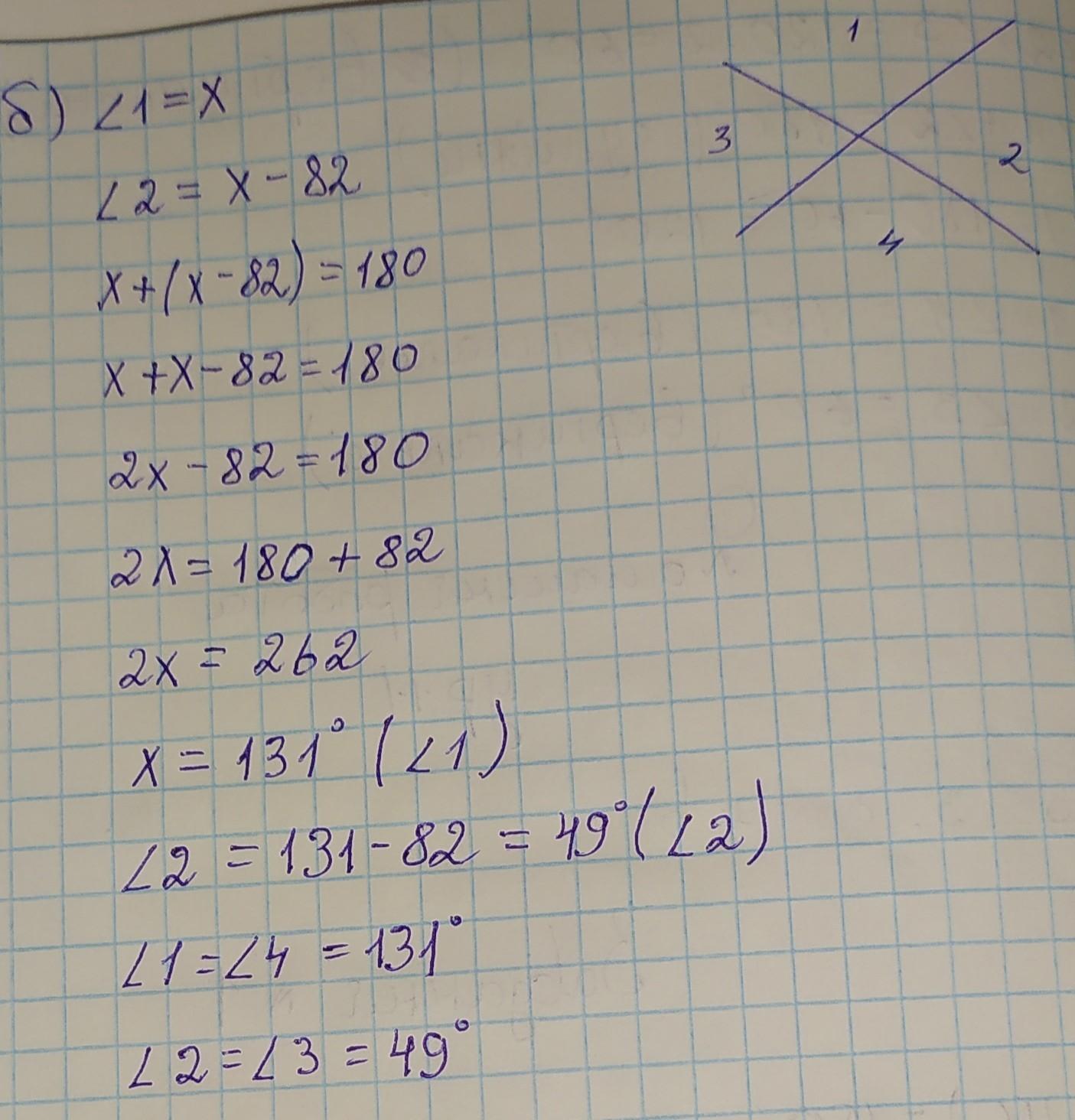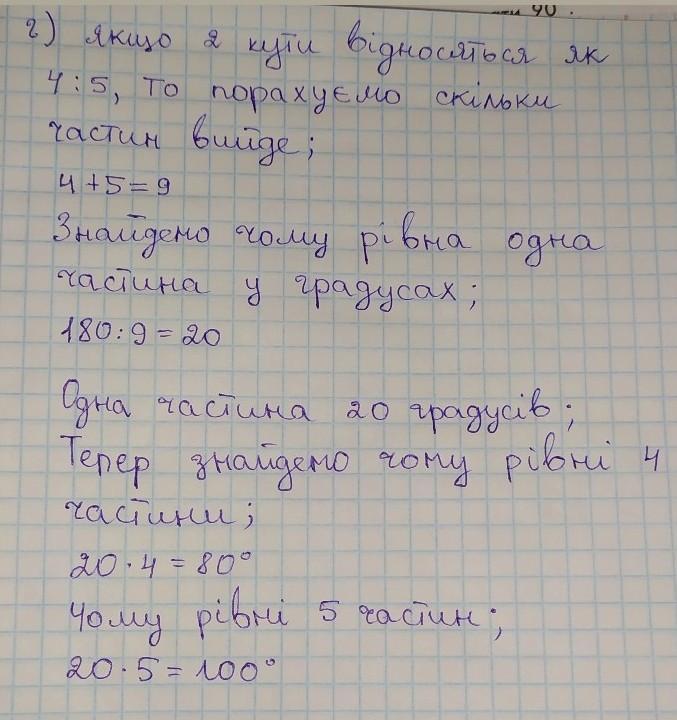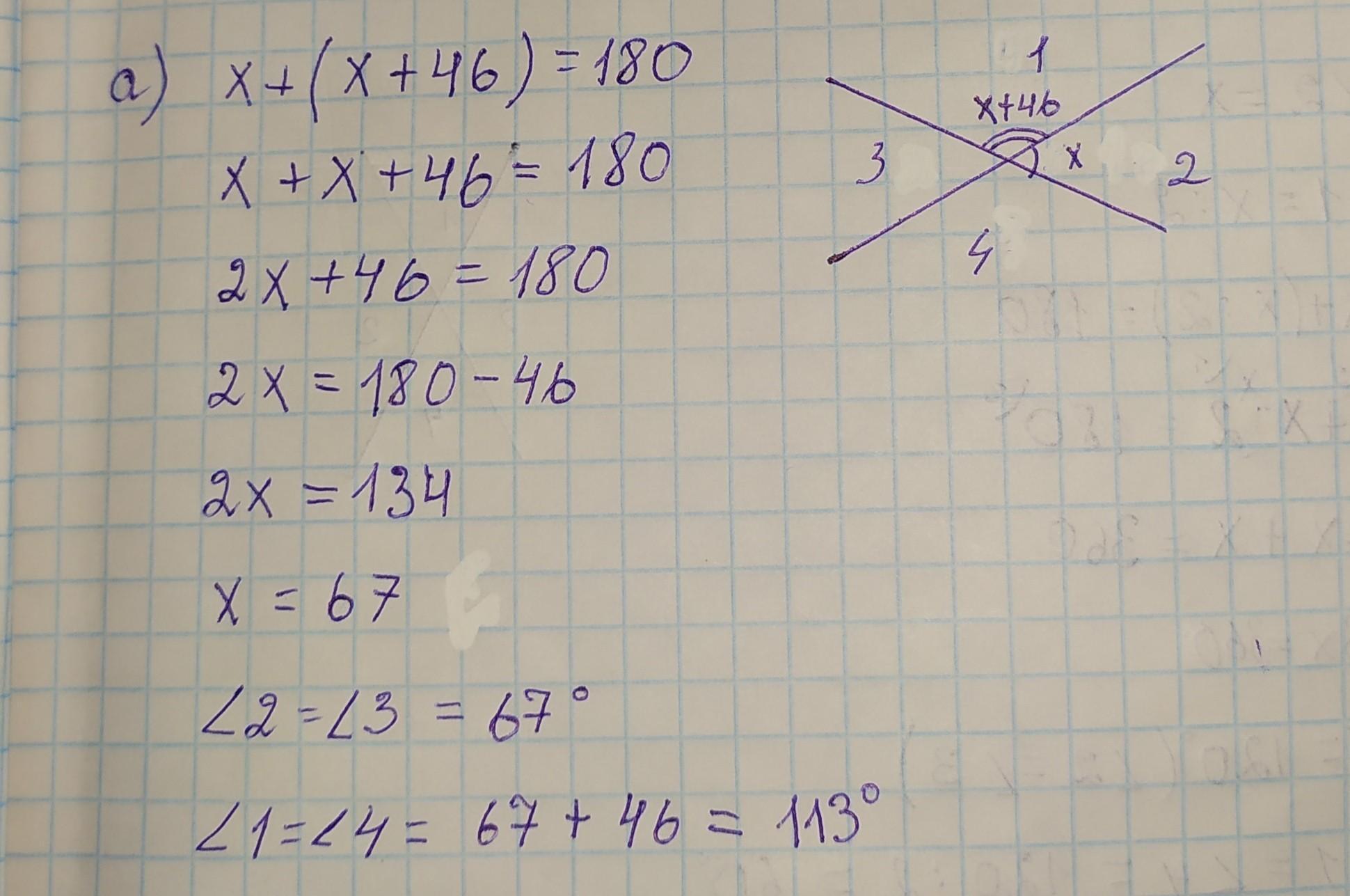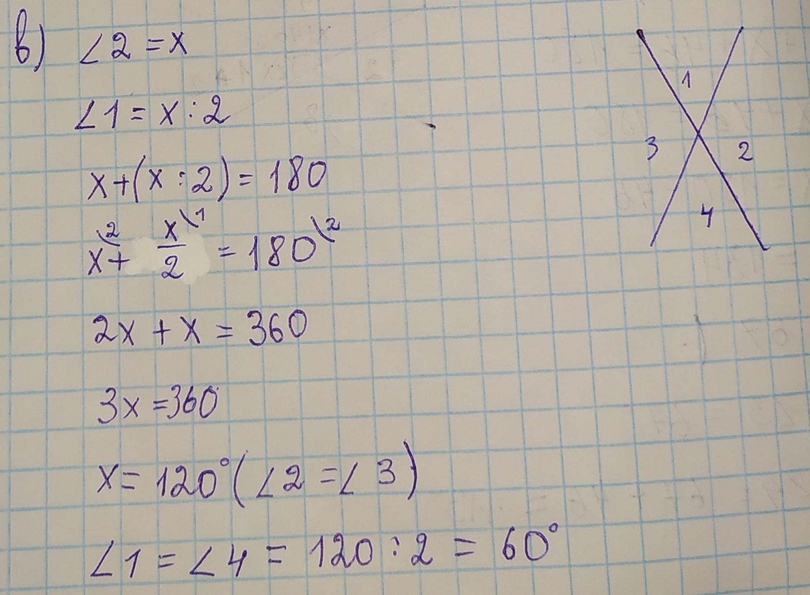 Знайди градусні міри кутів, що утворюються при перетині двох прямих, якщо: