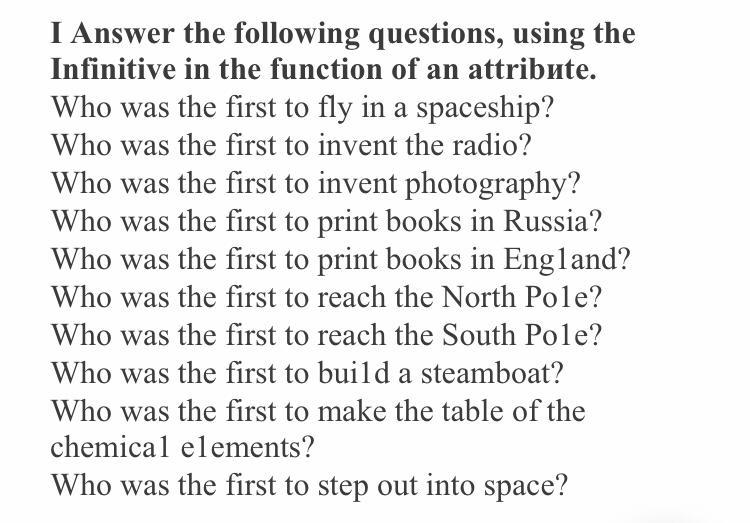 Ответе на следующие вопросы, используя инфинитив в функции атрибута.