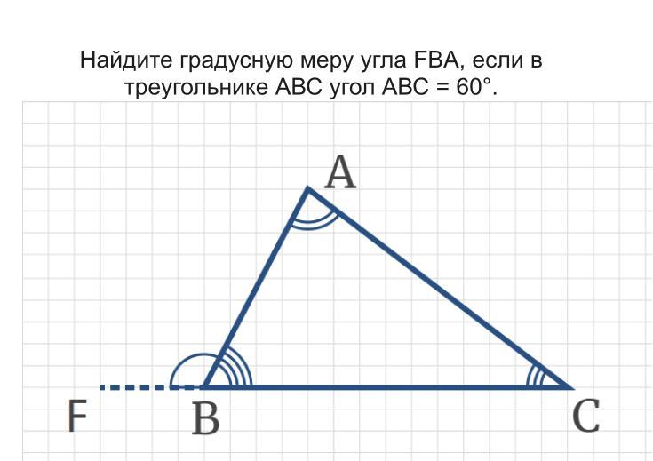 СРОЧНО ДАЮ 35 БАЛЛОВ . Найдите градусную меру угла FВA, если в треугольнике АВС угол АВС = 60°. СРОЧНО ДАЮ 35 БАЛЛОВ