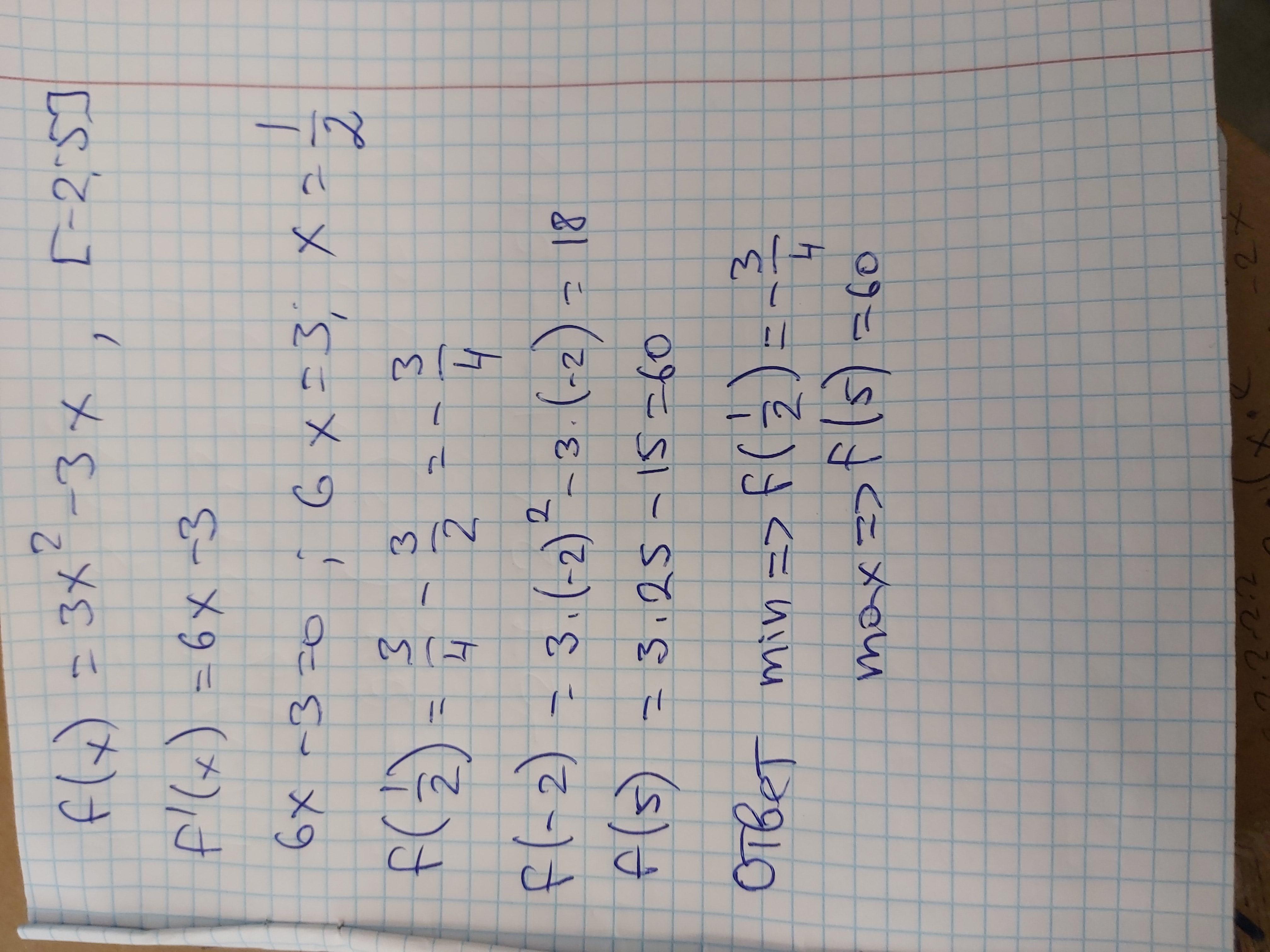Найти наибольшее и наименьшее значение функции f(x)=3x^2-3x на отрезке [-2, 5]