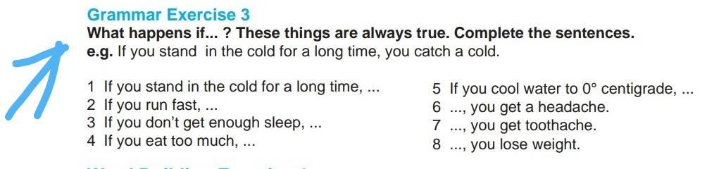 Ответ:1) long time, you catch a cold 2)fast, you get tired very quicly 3)sleep, you fall asleep during work or class 4)much, you gain weight and become fat 5)centigrade, you start freezing 6)if you work hard, you... 7)if you eat meat or acid foods, you... 8)if you don't eat during the whole day, you...