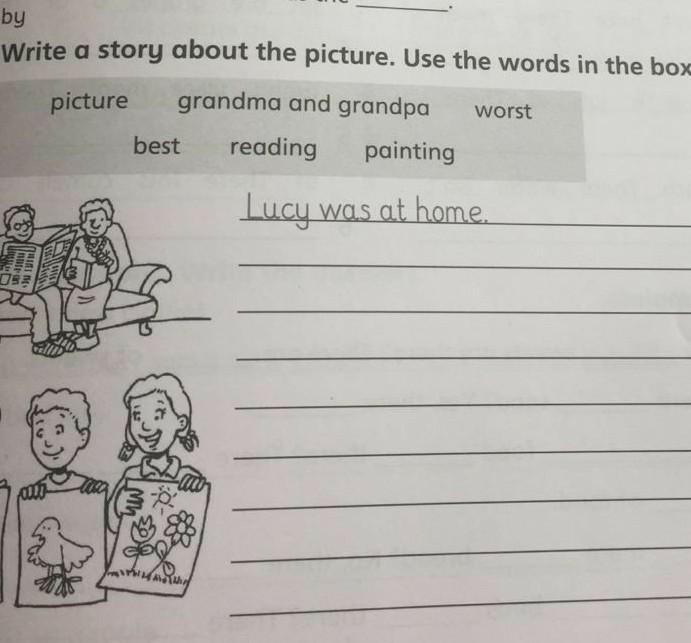 Lucy was at home , while her grandma and grandpa were reading literature . Lucy and her brother painted some pictures , but grandparents told them that Lucy's was the best and her brother's the worst