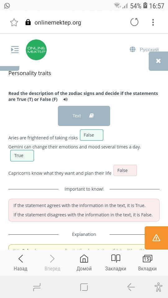 Read the description of the zodiac signs and decide if the statements are True (T) or False (F)