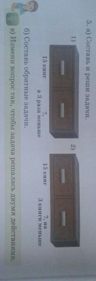 В букве в) вопрос: В первом ящике 15 книг, во втором ? книг, в 3 раза больше, чем в первом. Сколько всего книг?