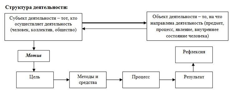 Схема деятельности. От начала (от мотива или цели, не помню точно) и до результата. Заранее большое спасибо тем кто скажет правильно