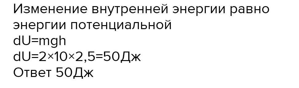 Стальной шар массой 5 кг, упав с некоторой высоты на поверхность земли, нагрелся на 0,2°С. На сколько при этом изменилась внутренняя энергия шара? Изменением внутренней энергии земли и воздуха пренебречь