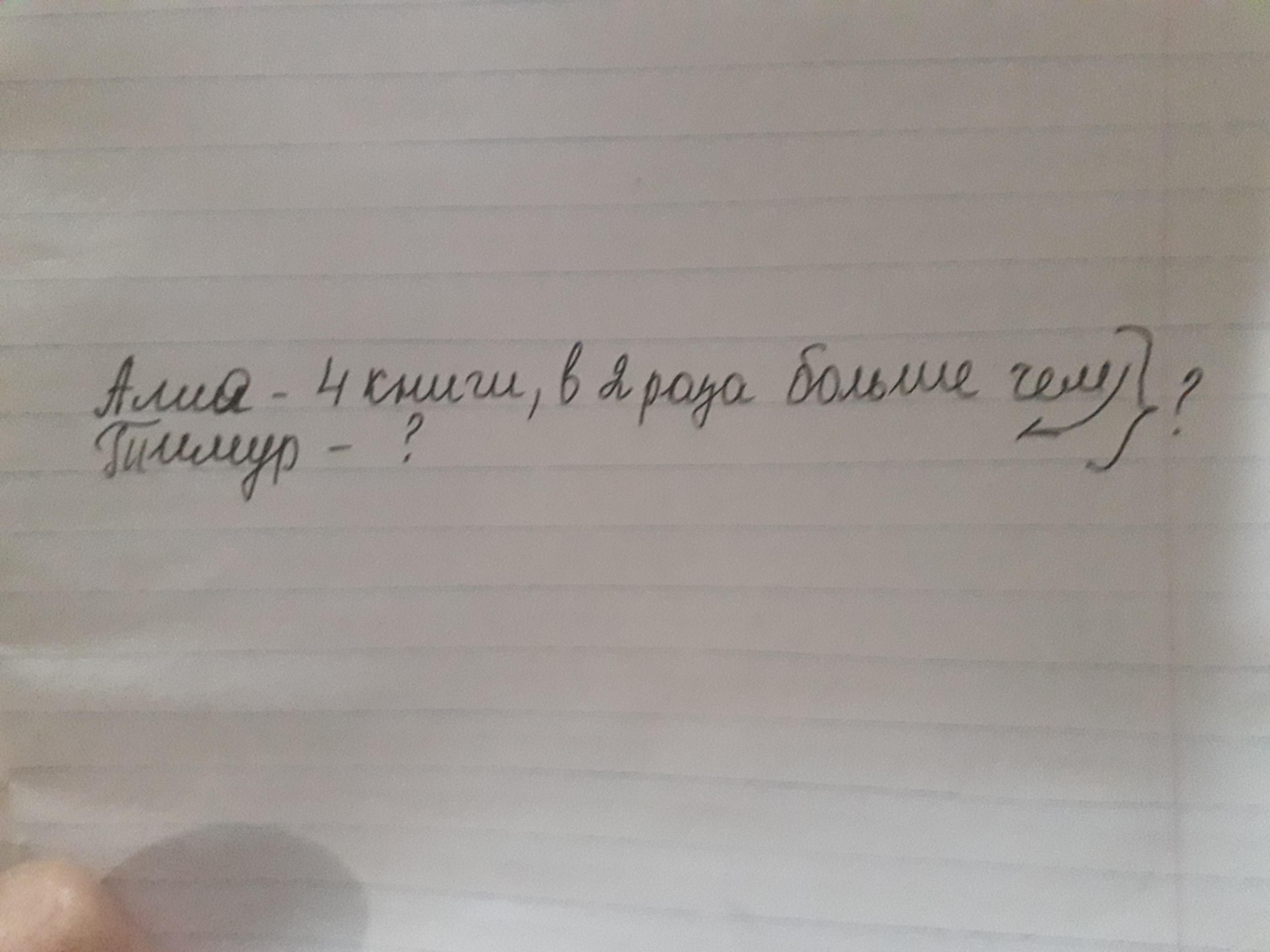 Если Алия 4 кн и в два раза больше Тимура, то тогда, Тимур = 4:2 = 2 кн.