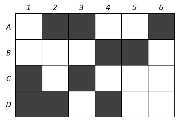 Старый пират: «Как вы видите, остров поделён на 24 квадратных области. В одной из 10 закрашенных областей я зарыл клад.»