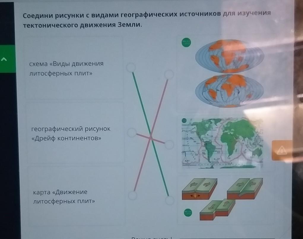 Соедини рисунки с видами географических источников для изучения тектонического движения Земли