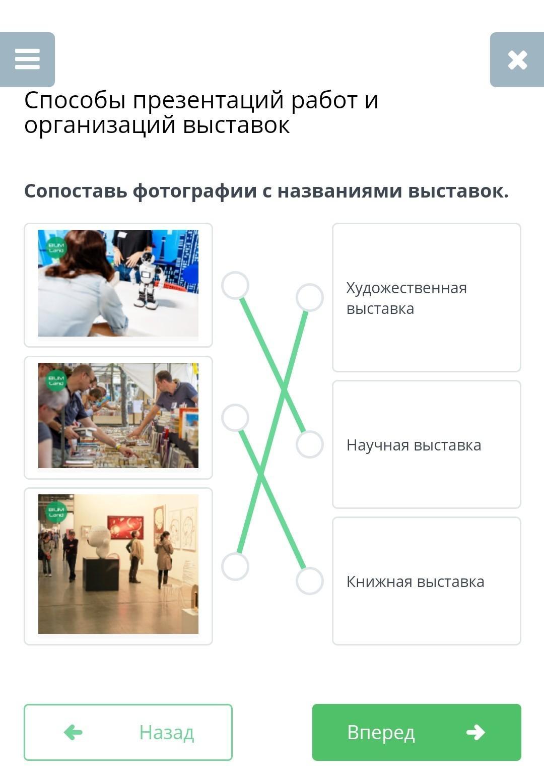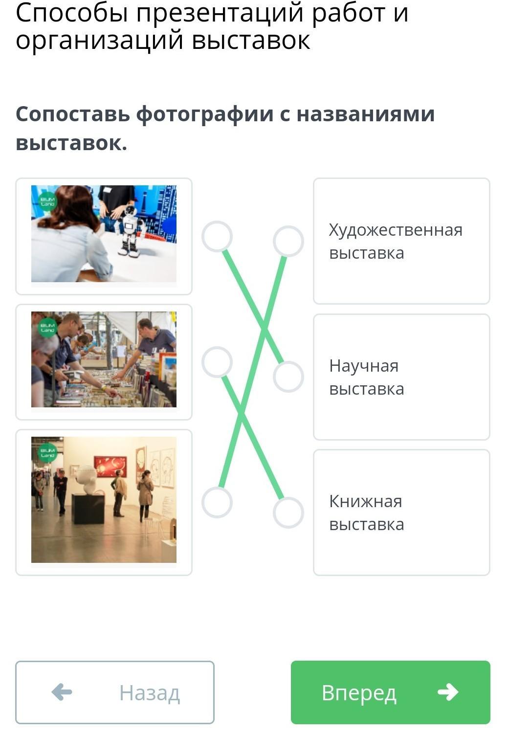 Сопоставь фотографии с названиями выставок.