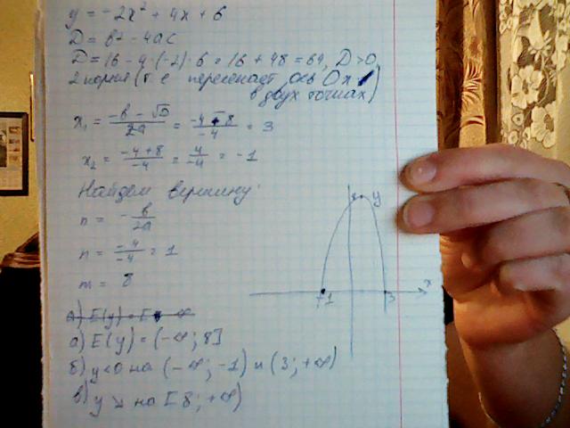 Воспользовавшись графиком найдите:а)область значений фунциии.б)все значения х,для каких функция принимает отрицательные значения.в)промежуток на каком функция спадает.
