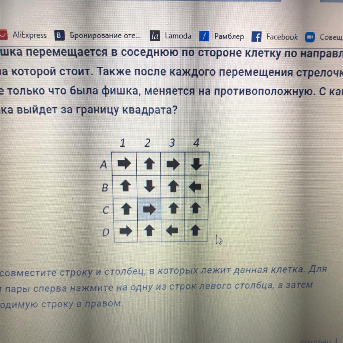 В квадрате 4х4 в отмеченной серым цветом клетке стоит фишка. За одно