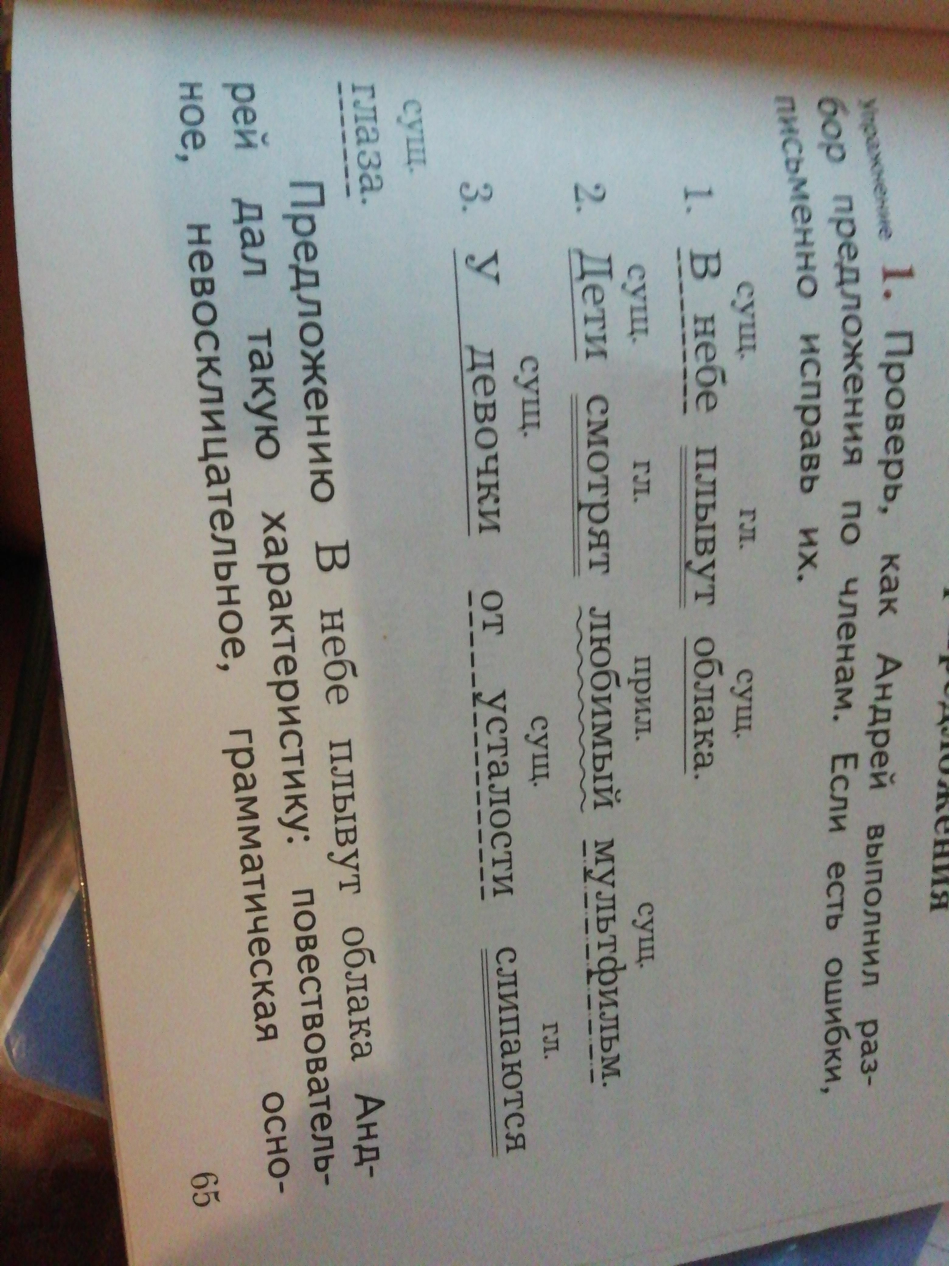 Проверь как Андрей выполнил разбор предложения по членам Если есть ошибки письменно Исправь их
