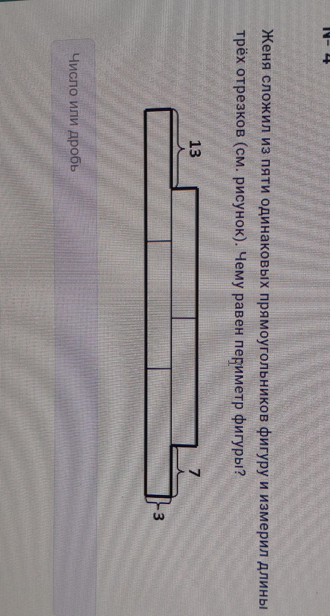 Женя сложил из пяти одинаковых прямоугольников фигуру и измерил длины