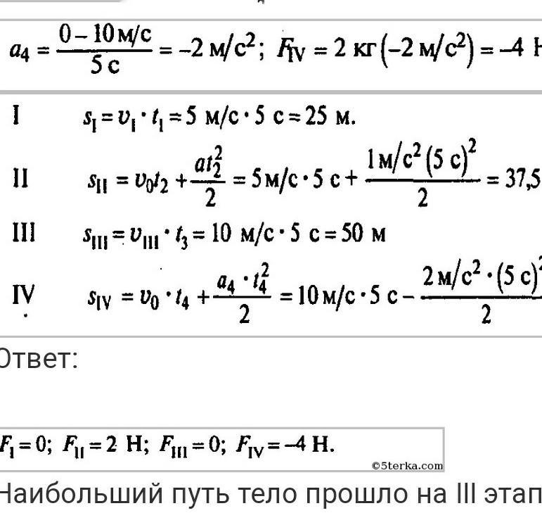 Скорость тело массой 2 кг изменяется со временем так как представлено на графике рисунка 59 Найдите силу, на каждом этапе этого движения определите по графику на каком этапе тело прошло наибольший путь.
