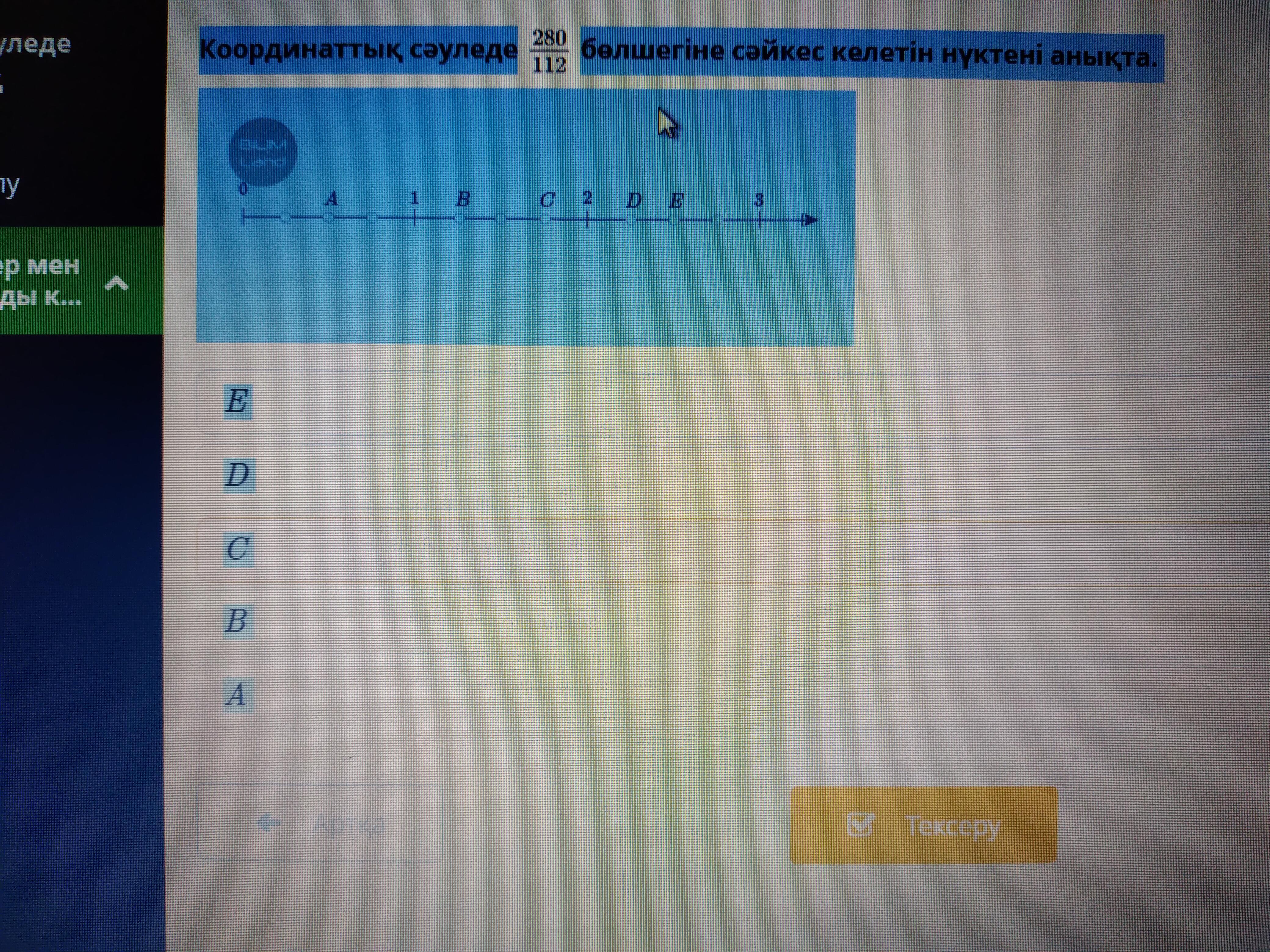 Координаттық сәуледе бөлшегіне сәйкес келетін нүктені анықта. C D B E A теез көмек кереек өтінемін.