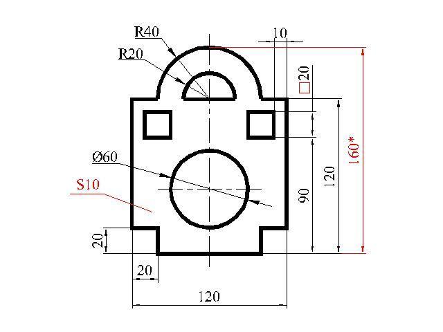 160* - габаритный размер. Этот размер является справочным, т.к. его можно вычислить: 120 + R40 = 160. Указывается со звездочкой и внизу над штампом делают надпись: *Размер для справок.