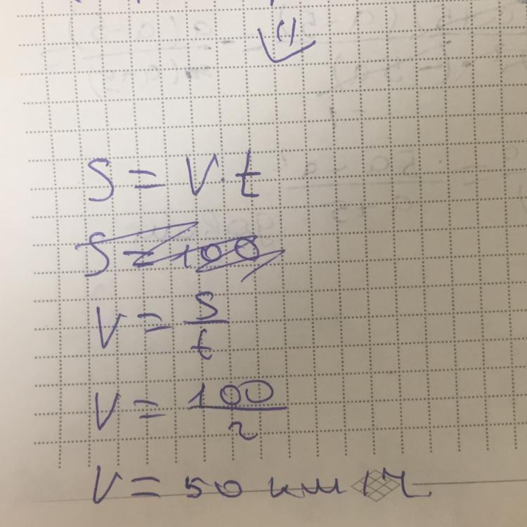Туристу нужно пройти путь, равный 100км, 2 часа. С какой скоростью ему необходимо идти?