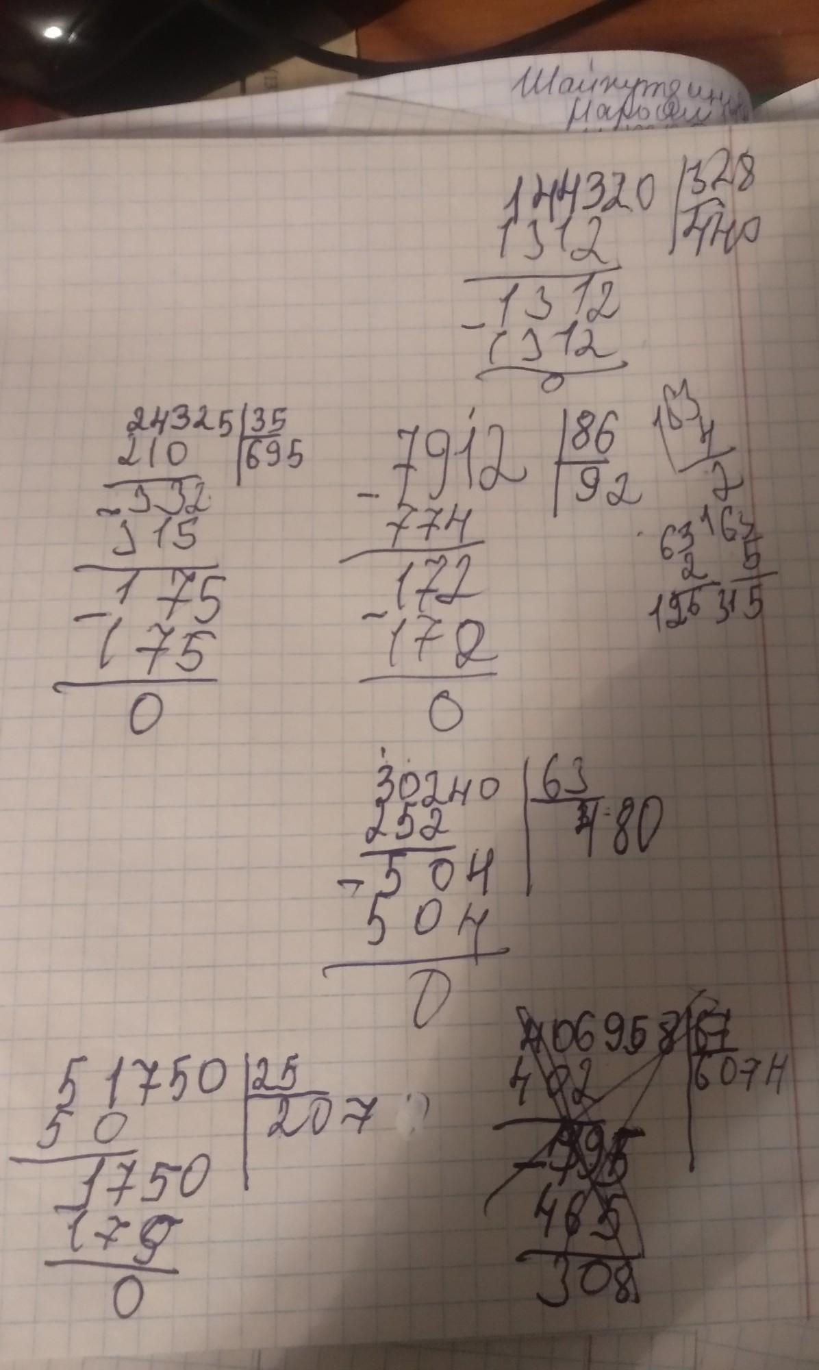 7912:86 30240:63 38640:48 24325:35 51750:25 406958:67 336378:42 18450:246 225261:729 144320:328 столбиком