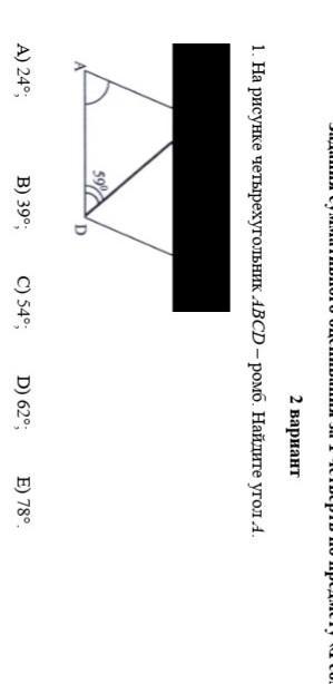 Задача имеет смысл только в том случае, если заданный на рисунке угол - это угол между диагональю и стороной ромба.
