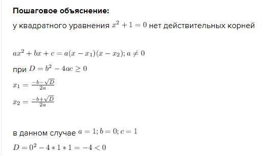 Почему нельзя представить квадратный трёхчлен в виде произведения многочленов первой степени x2+1