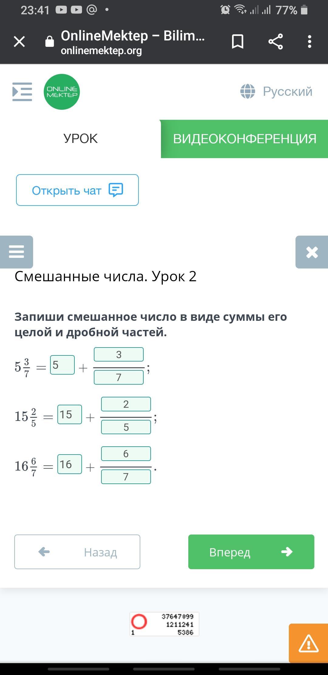 Запиши смешанное число в виде суммы его целой и дробной частей.