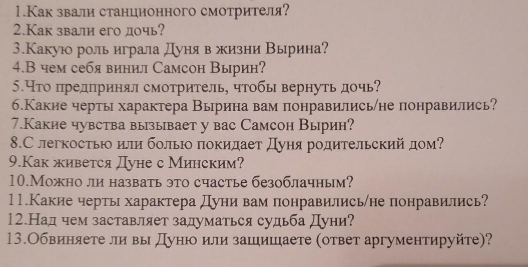 13.Я Дуню не осуждаю не в коем случае. Ведь она не сама бросила отца и кинулась в ноги Минскому. Ее увез он сам по своей воле. Захотелось ему,ведь Дуня ему очень понравилась. Он в нее влюбился. Вырин знал что дочь его богата да в роскоши живет. Он хотел просто с ней повидаться. Но Минский его даже на порог не пустил!Поэтому здесь именно в этой ситуации я считаю нужно винить Минского а не Дуню.