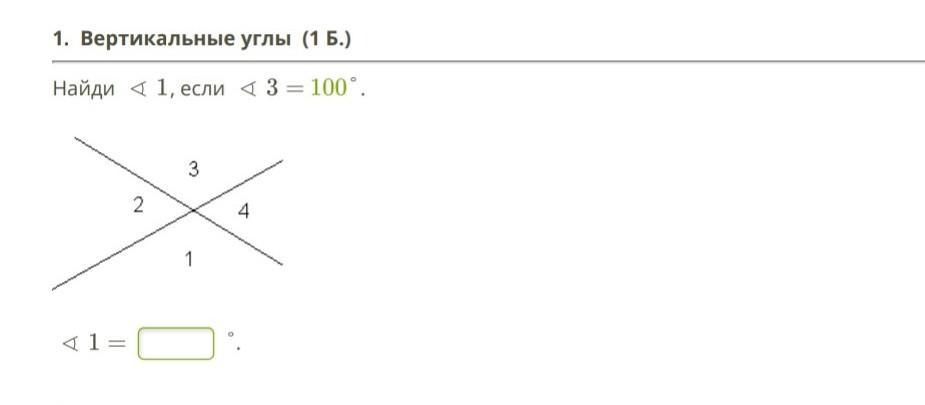угол 3 равен 1 как вертикальные значит угол 1 тоже 100