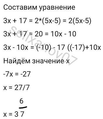 При каком значении x значение выражения 3x+17 втрое больше значения выражения 5x-5?
