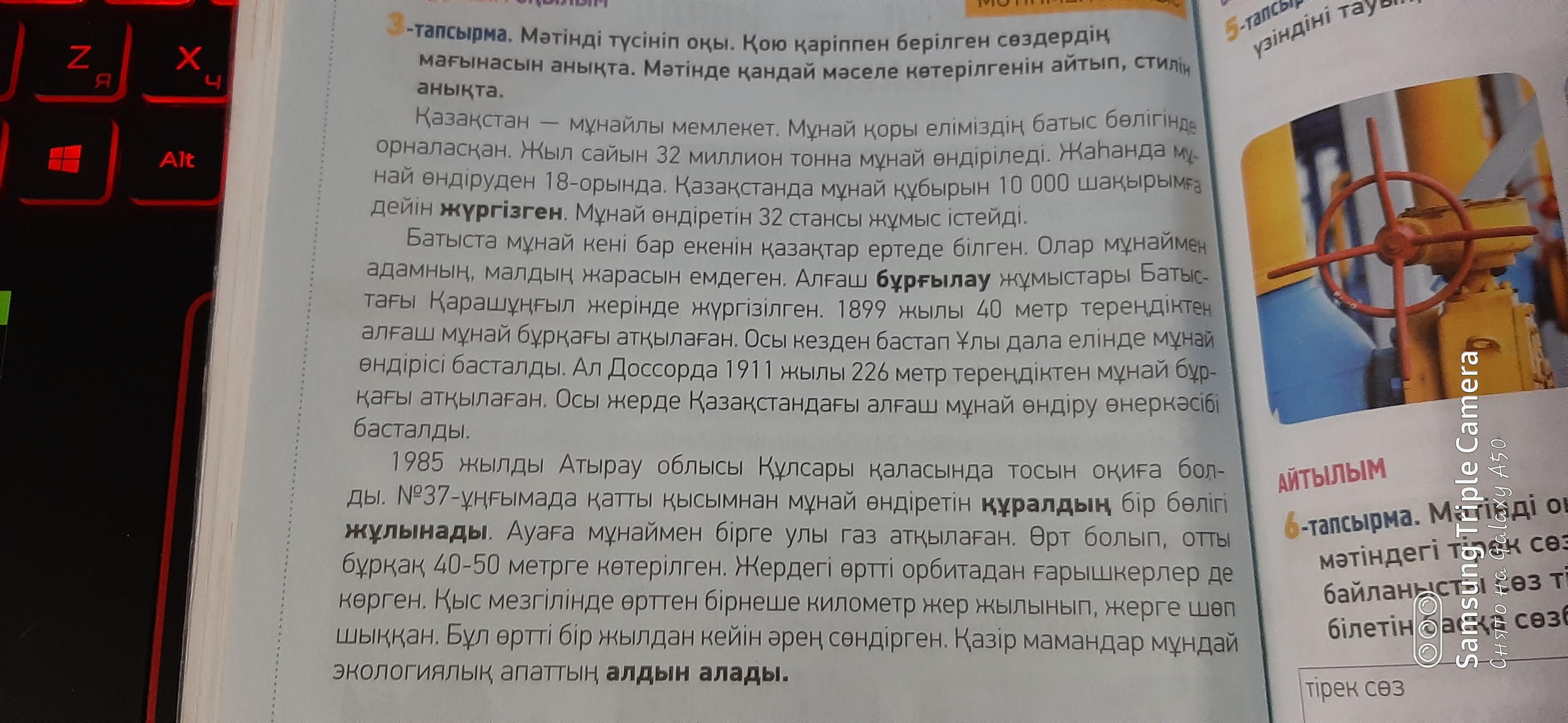 Ответ:мен білетін ақпарат: Қазақстаның батыс бөлігінде мұнай өндіретін,