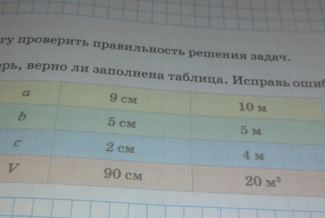 Проверь, верно ли заполнена таблица. Исправь ошибки.