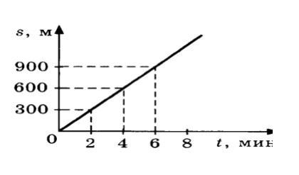 На рисунке представлен график зависимости пути от времени. Определите скорость тела в системе СИ.