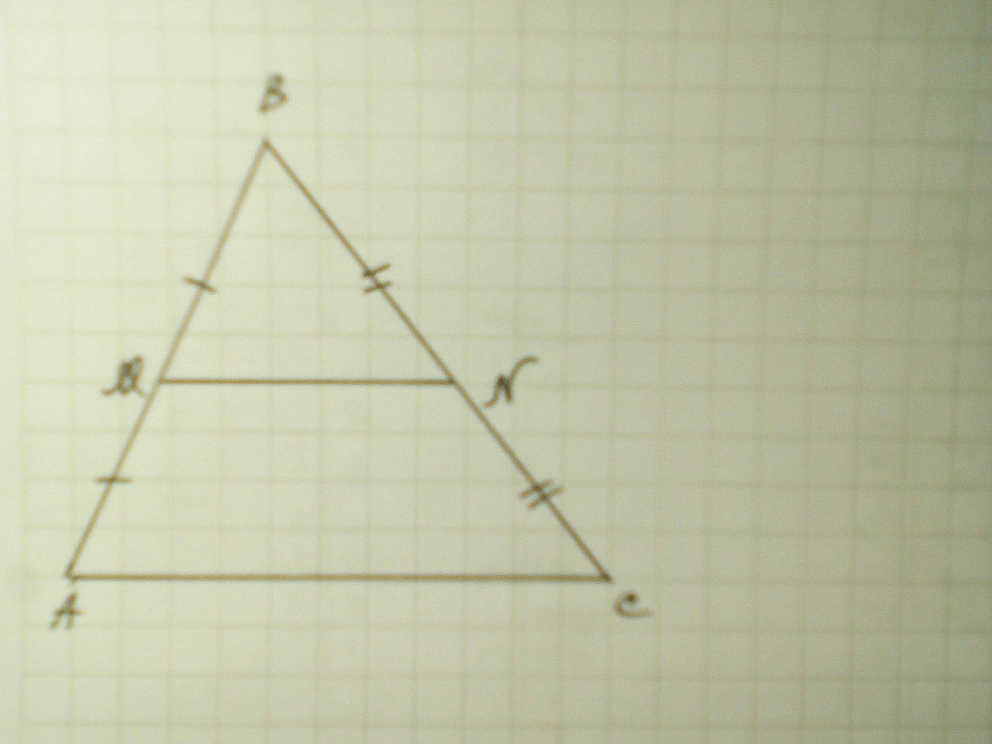 Дано: ΔАВС; MN - средняя линия; АM=MВ=8 дм; ВN=NС=12 дм, MN=10 дм.