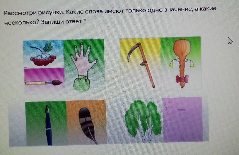Рассмотри рисунки. Какие слова имеют только одно значение, а какие