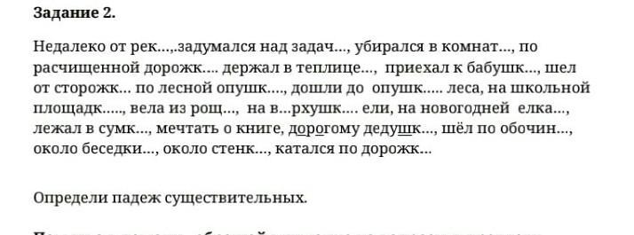 Ответ:реки,задачей,комнате,дорожке,теплице,бабушке,сторожки по лесной опушке,дошли до опушки леса,площадке,рощи,верхушке,елке,сумке,дедушке,обочине,беседки, стенки,дорожке.